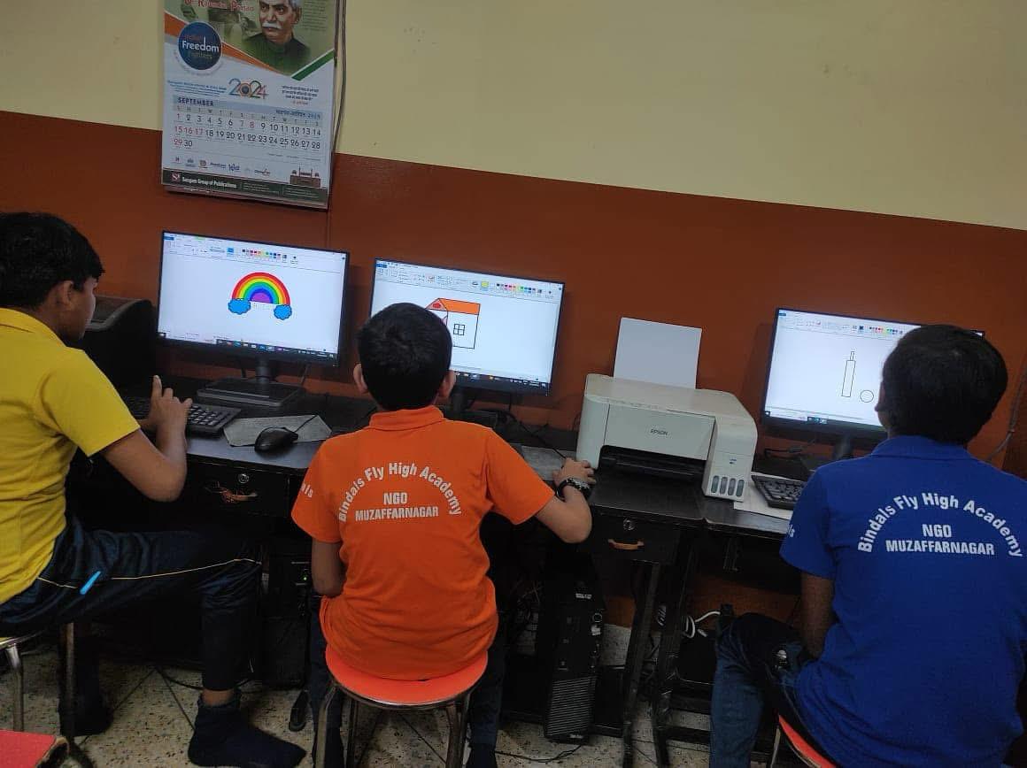Free education for underprivileged children through Bindals Fly High Academy, shaping brighter futures.